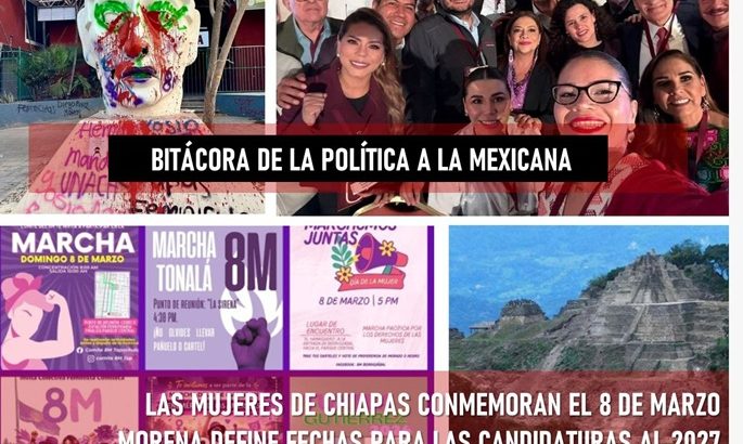 2.- En Chiapas todos conmemoran el 8 de Marzo, es decir el “Día Internacional de la Mujer”: Pero se hace necesario hacer efectivas las leyes que buscan la igualdad. Las mujeres somos las más precarizadas laboralmente, somos acosadas, persiste el embarazo infantil y las relaciones forzadas, no se han detenido los feminicidios, la mujer indígena es la más marginada, se lucha también por la “paridad laboral”. En conclusión, las condiciones de las mujeres en Chiapas nos recuerdan que la igualdad se conquista. La lucha sigue.
