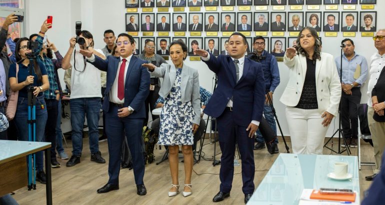 Por tal motivo, en cumplimiento del mandato constitucional, la presidenta del Congreso, Alejandra Gómez Mendoza, tomó la protesta de rigor a las y a los nuevos magistrados.
