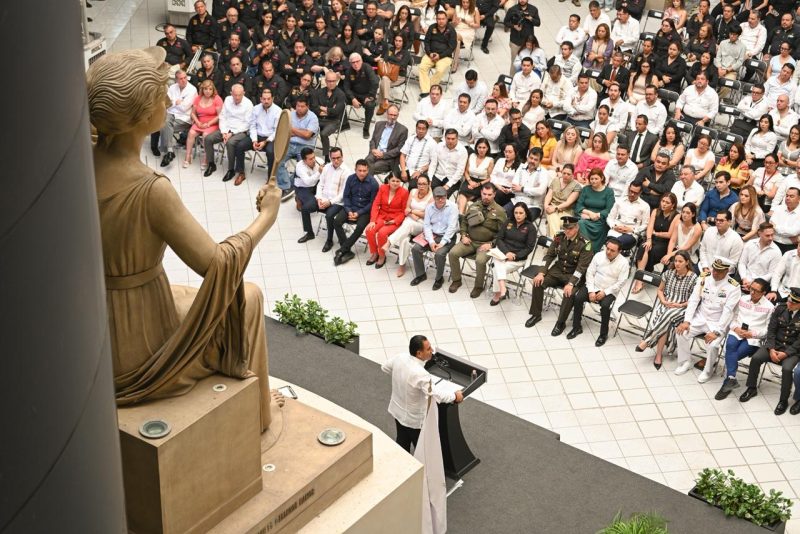De igual manera, asistieron representantes de las Fuerzas Armadas, integrantes de la Mesa de Paz, diputadas y diputados, consejería del IEPC, consejeras y consejeros de la Judicatura, magistradas, magistrados, juezas y jueces, así como personas servidoras del pueblo.