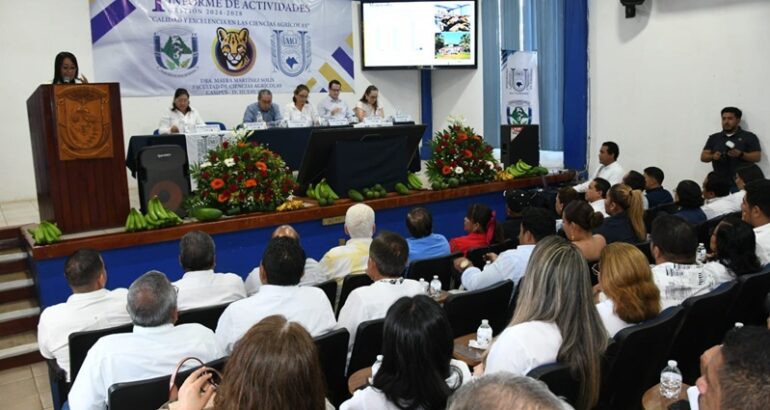 Huehuetán, Chiapas. – Rindió su 1er. Informe de Actividades, Gestión 2024-2028, la director de la Facultad de Ciencias Agrícolas, Campus IV, de la Benemérita Universidad Autónoma de Chiapas, Mayra Martínez Solís, ante los integrantes de la Junta de Gobierno, la comunidad docente y estudiantil de esta unidad académica.