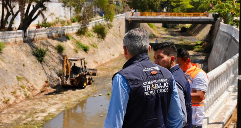 La limpieza integral se desarrolla en tres etapas que concluirán el próximo 30 de mayo de este año, a través de un trabajo interinstitucional de las Secretarías de Protección Civil y de Obras Públicas Municipales, así como del Sistema Municipal de Agua Potable y Alcantarillado.