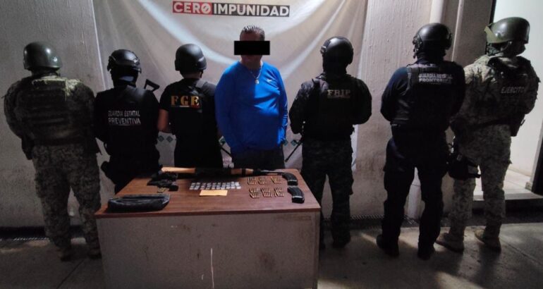 La Secretaría de Seguridad del Pueblo (SSP) a través de la Subsecretaria de Inteligencia e Investigación Policial, Fuerza de Reacción Inmediata Pakal (FRIP), Guardia Estatal Fronteriza y Guardia Estatal Preventiva en coordinación con la Agencia de Investigación e Inteligencia Ministerial (AIIM) de la Fiscalía General del Estado (FGE), Secretaría de Seguridad y Protección Ciudadana (SSPC) del Gobierno Federal y Ejército Mexicano, detuvieron a un masculino por los probables delitos de violación a la Ley Federal de armas de fuego y contra la salud, en el municipio de Tapachula.