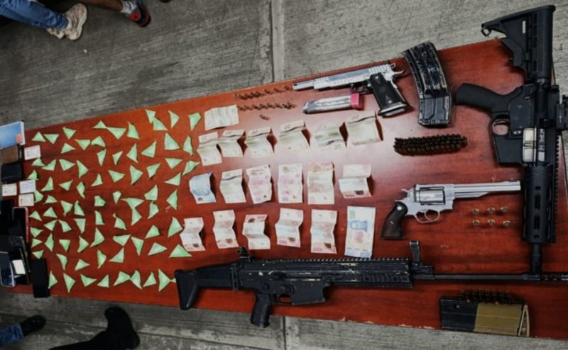 Como resultado, se aseguraron un arma tipo revólver calibre 44mm, con seis cartuchos útiles; una pistola escuadra calibre 38 súper, con un cargador abastecido de 17 cartuchos útiles; un arma larga calibre 7.62×51, con un cargador abastecido con 15 cartuchos útiles, y un arma larga multicalibre .223/5.56, con un cargador abastecido con 58 cartuchos útiles. Además de 78 bolsitas con cristal, dinero en efectivo, nueve teléfonos celulares y cuatro motocicletas.