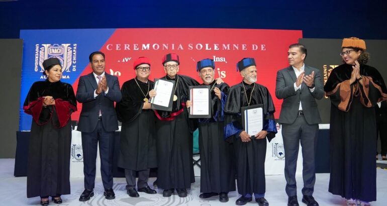 Acompañado del rector Oswaldo Chacón Rojas, y de la comunidad universitaria, el mandatario felicitó a los galardonados por su trayectoria y compromiso humanista. Reconoció también su contribución al enriquecimiento de Chiapas a través de la historia, la antropología y el desarrollo académico, que han permitido profundizar en el conocimiento de los orígenes y la evolución del tiempo.