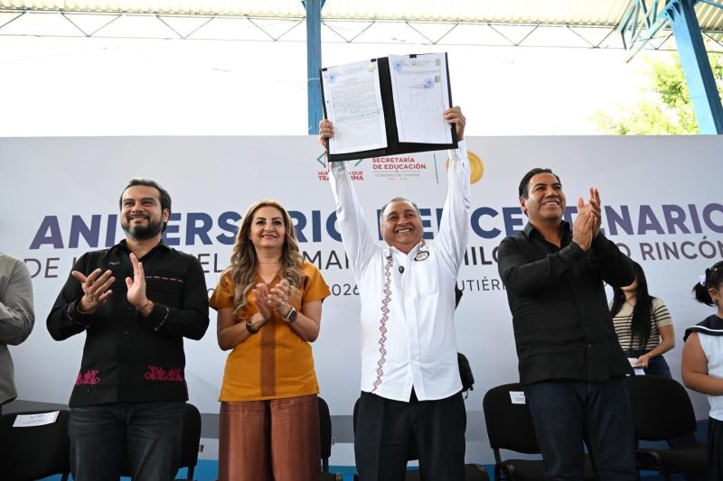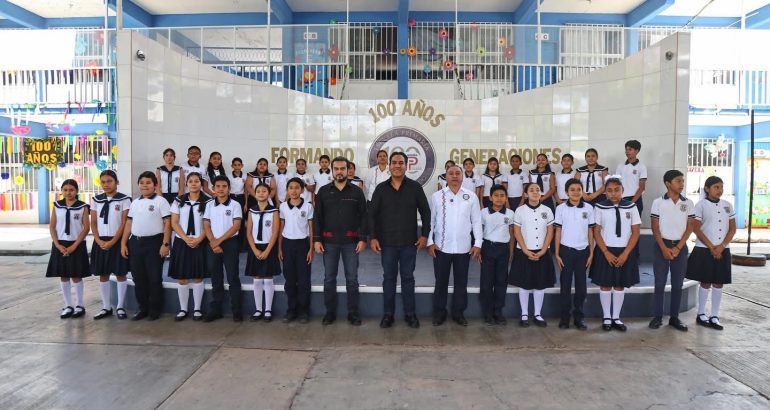 En este marco, Ramírez Aguilar dio inicio a la construcción de aulas didácticas, un domo y una cancha de usos múltiples, además de adelantar que se dotará al plantel de herramientas tecnológicas educativas, con la finalidad de consolidarlo como una escuela prototipo a nivel estatal. “¡Felicidades a la Primaria Camilo Pintado por estos 100 años! ¡Que viva la Camilo Pintado! ¡Que viva y reviva siempre!, expresó.