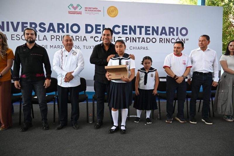El gobernador Eduardo Ramírez Aguilar asistió a la celebración del Centenario de la Escuela Primaria Camilo Pintado Rincón, en Tuxtla Gutiérrez, donde destacó que el legado de esta institución se construye a partir de las historias de vida de sus generaciones de egresadas y egresados, así como del compromiso, la vocación y la entrega de las y los maestros.