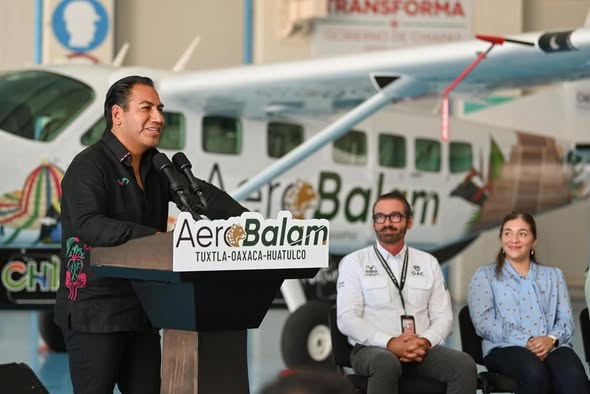 Más tarde, ambos mandatarios inauguraron el vuelo de AeroBalam que conectará a Tuxtla Gutiérrez con Oaxaca y Huatulco. Ramírez Aguilar afirmó que este paso amplía la conectividad entre Chiapas y el sur de México, y explicó que se trata de la primera ruta que se consolida hacia el exterior del estado. Añadió que la meta es abrir nuevos destinos hacia la Selva Lacandona, Veracruz, Guatemala y Houston.