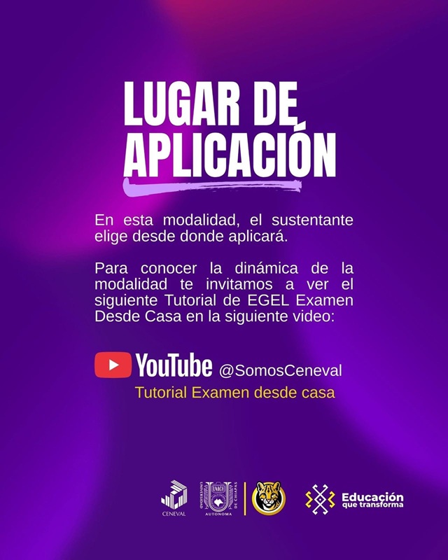 Tuxtla Gutiérrez, Chiapas.- La Benemérita Universidad Autónoma de Chiapas, a través de la Dirección de Formación e Investigación Educativa de la Secretaría Académica, convoca a todos los estudiantes del último semestre y egresados de los diferentes programas educativos a participar en la aplicación institucional del Examen General de Egreso de Licenciatura (EGEL) PLUS – CENEVAL, Examen Desde Casa (EDC).