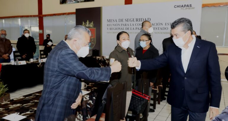 Asimismo, el delegado de la Fiscalía General de la República en Chiapas, Alejandro Vila Chávez; el comandante de la 31 Zona Militar, Gilberto Martínez Martínez; el representante de la 14 Zona Naval, Carlos Herrera Quiñones; el comandante de la Coordinación Estatal de la Guardia Nacional en Chiapas, José Antonio Noé Valdés López; el coordinador regional de la Guardia Nacional en San Cristóbal de Las Casas, Bernardo Cortés Arenas; la subjefa de Estación del Centro Nacional de Inteligencia en Chiapas, Silvia Flores Camargo; la subrepresentante federal Zona Centro del Instituto Nacional de Migración, Paola López Rodas; y las y los presidentes municipales de San Cristóbal de Las Casas, Chamula, San Lucas, Zinacantán, San Juan Cancuc y Tenejapa.