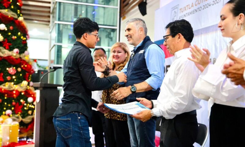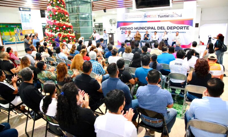 Ante la presencia de atletas, entrenadoras, entrenadores y promotores deportivos, el presidente Angel Torres, junto al director del Instituto del Deporte Tuxtleco, Manuel Martínez, encabezó la entrega del Premio Municipal del Deporte 5ª Edición 2025, en el patio de presidencia municipal.