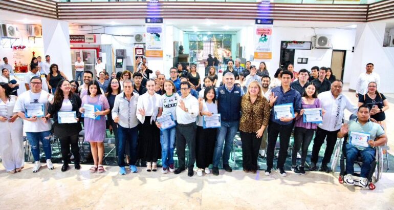 Ante la presencia de atletas, entrenadoras, entrenadores y promotores deportivos, el presidente Angel Torres, junto al director del Instituto del Deporte Tuxtleco, Manuel Martínez, encabezó la entrega del Premio Municipal del Deporte 5ª Edición 2025, en el patio de presidencia municipal.