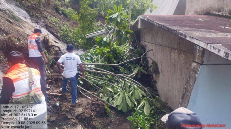 Derivado de las lluvias registradas durante la noche y madrugada, se presentó un deslizamiento de tierra en la comunidad El Jardín, del municipio de Simojovel de Allende, afectando a la Escuela Primaria Ignacio José de Allende y Unzaga.