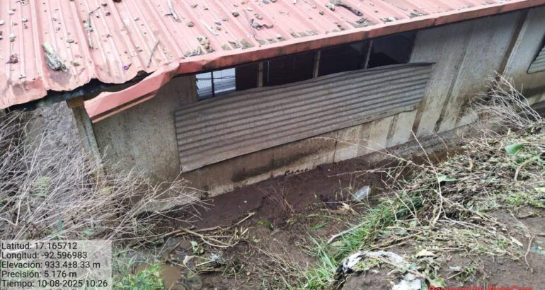 Derivado de las lluvias registradas durante la noche y madrugada, se presentó un deslizamiento de tierra en la comunidad El Jardín, del municipio de Simojovel de Allende, afectando a la Escuela Primaria Ignacio José de Allende y Unzaga.