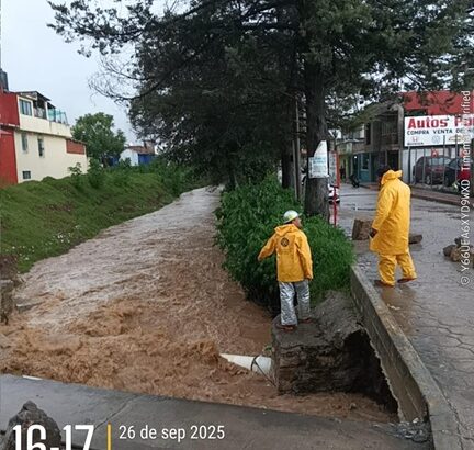 Protección Civil informó que también se presentaron afectaciones en la colonia Emiliano Zapata, donde la calle 30 de Abril registró agua a nivel de banqueta. Asimismo, el Puente del Río Jordán llegó al 75% de su capacidad, mientras que en la colonia Paraíso se reportó un encharcamiento de aproximadamente 15 centímetros en un domicilio de la Avenida Martín.