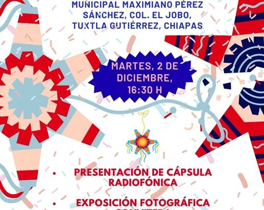 La primera jornada tendrá lugar MAÑANA MARTES 2 DE DICIEMBRE, a las 16:30 horas en la Biblioteca Pública Municipal “Maximiano Pérez Sánchez”, en la colonia El Jobo. Entre las actividades programadas se encuentran la presentación de una cápsula radiofónica, una exposición fotográfica, un taller de creación de piñatas y un espacio de convivencia comunitaria, todo con entrada libre y dirigido a personas de todas las edades.