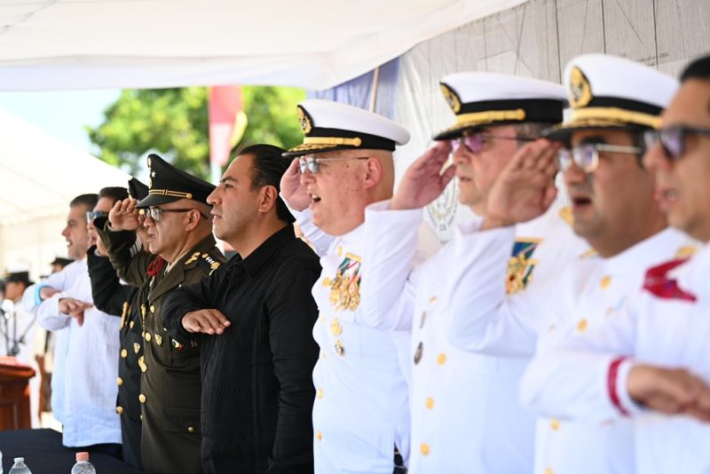 El gobernador Eduardo Ramírez Aguilar asiste a la toma de posesión y protesta del Vicealmirante Miguel Ángel Núñez de la Huerta como nuevo Comandante de la Vigésima Segunda Zona Naval en Tapachula, Chiapas.
