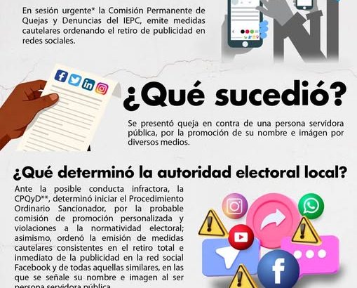 #AutoridadElectoral | La Comisión Permanente de Quejas y Denuncias del #IEPC, emitió medidas cautelares ordenando el retiro inmediato de publicidad en redes sociales.