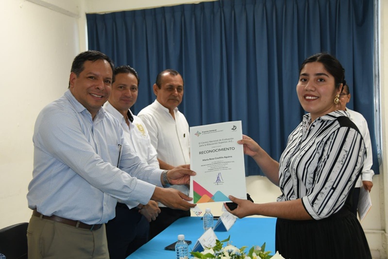 Florentino Pérez Pérez en representación del rector de la UNACH, Oswaldo Chacón Rojas, dijo que este premio se otorga a los sustentantes que alcanzan un desempeño sobresaliente o satisfactorio en el Examen General para el Egreso de la Licenciatura (EGEL Plus).