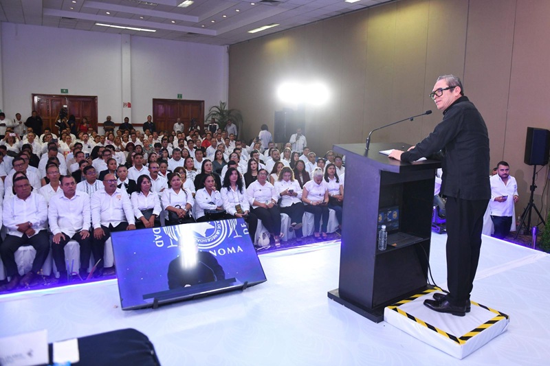 Tapachula, Chiapas.- El rector de la Universidad Autónoma de Chiapas, Oswaldo Chacón Rojas presentó el Informe de Actividades 2025, ante autoridades e integrantes de la comunidad universitaria, donde dio a conocer el estado que guarda la Máxima Casa de Estudios de los chiapanecos en el tema académico y administrativo.